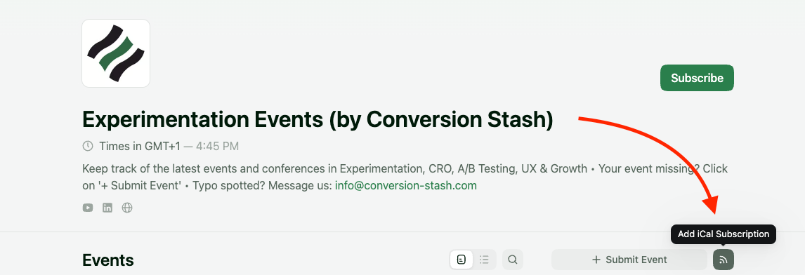 Did you know? You can easily add the Experimentation Events calendar to your Google, Outlook or Apple calendar by clicking this button.